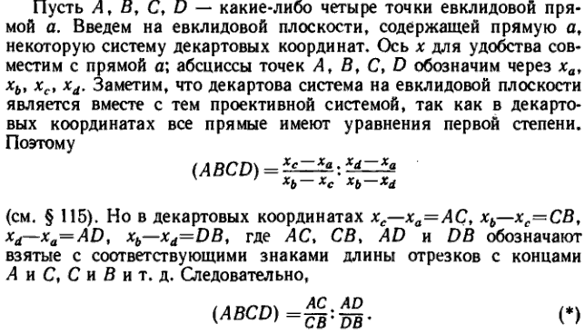 четырех точек прямой