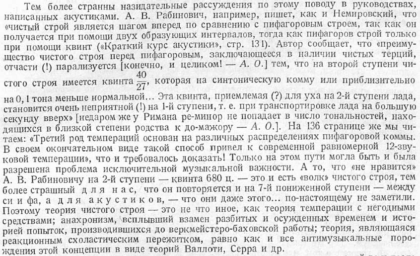 "В самом примитивном прототипе 12 - звучной системы, которую возможно построить по принципам "теории" "чистого" "строя", возникает неминуемо такая же квинта на 7-ой пониженной ступени."