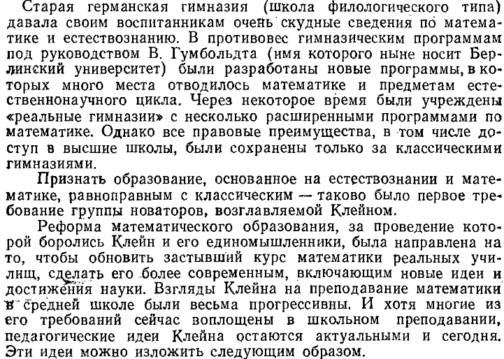 7.4.1.2.8.01.5. Новаторские подходы Ф. Клейна к вопросам школьного математического образования