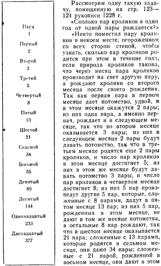 Числа Фибоначчи.