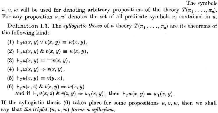 Syllogistics of some theories.