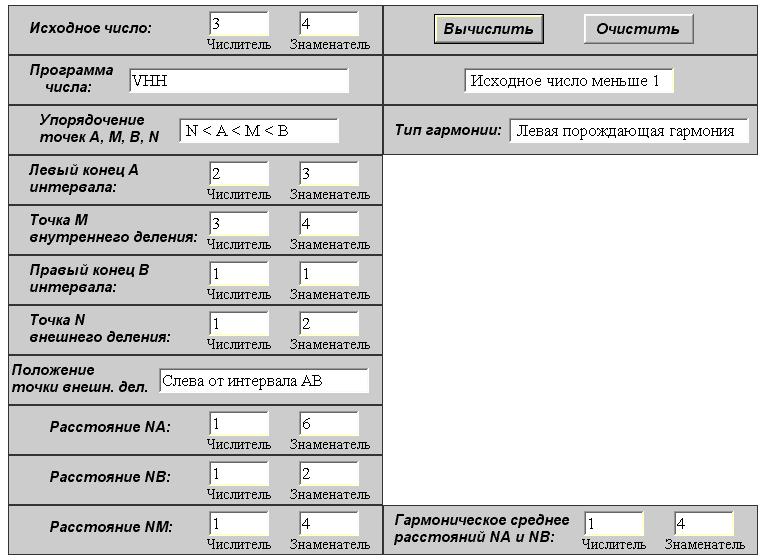 "исходное число" калькулятора значения: числитель =