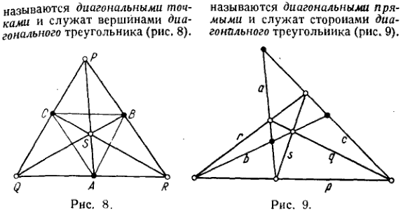 Теорему Дезарга 1.52 "о двух треугольниках" см.