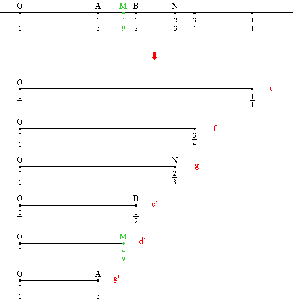 Построение такой системы "струн" можно интерпретировать как построение точек "числовой прямой":