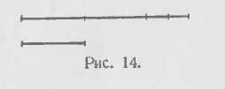 Если же в результате откладывания меньшего отрезка на большем получается остаток (Рис. 14), то пробуют сначала, не составляет ли этот остаток 1/2, 1/3 или 2/3, или вообще какую-либо дробную часть меньшего отрезка, служащего здесь мерой длины.