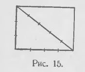И, поскольку сама диагональ равна 5 см., то (рис. 15) меньшая сторона прямоугольника и его диагональ имеют общей мерой отрезок в 1 см. и отношение их длин равно отношению 3 : 5.